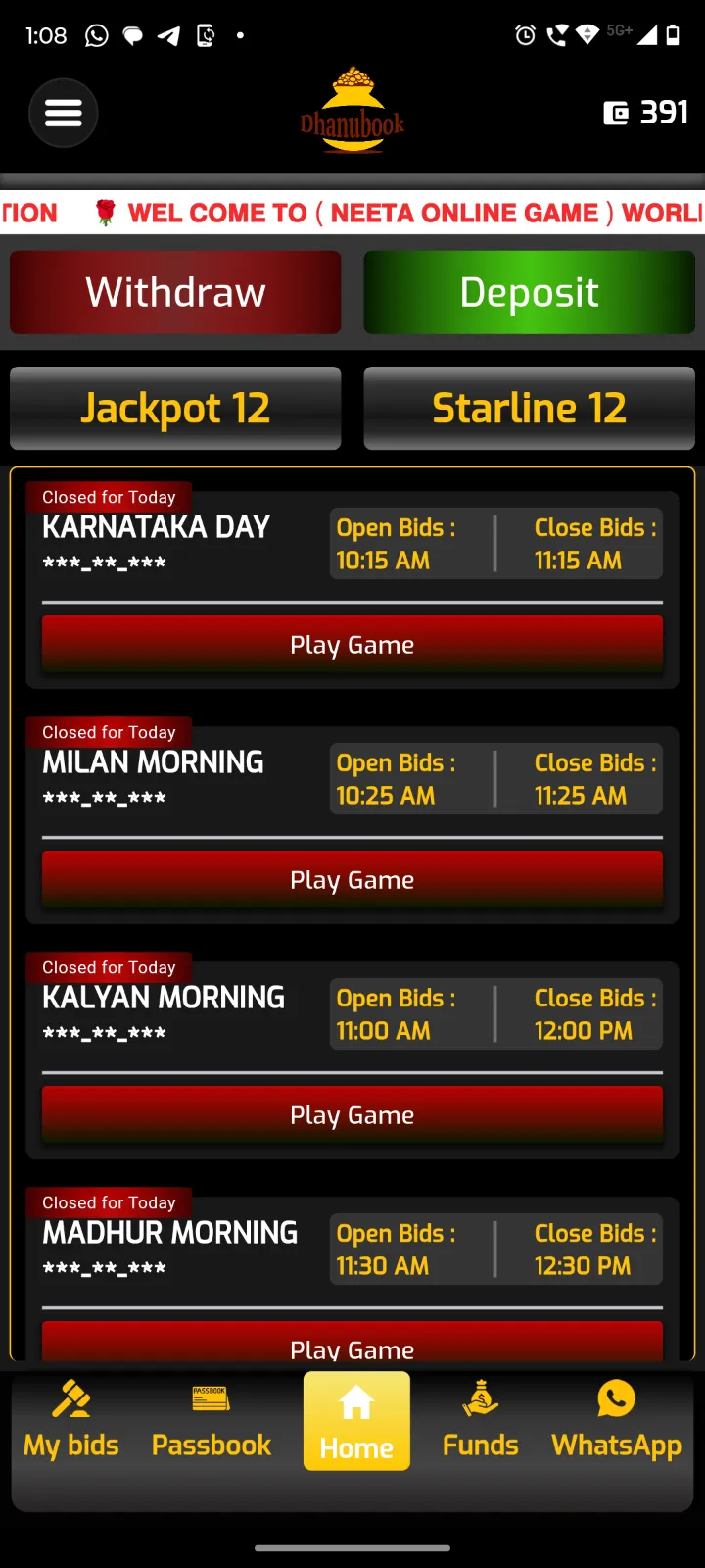 We offer many Dhanubook play games which include kalyan Katta , Rajdhani, Milan and many more.